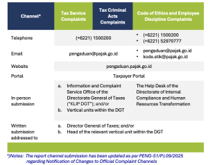 Procedures for Submitting Complaints Against Alleged Misconduct Within The Directorate General of Taxes