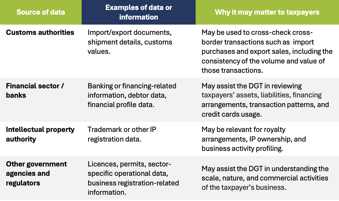 For taxpayers, data consistency will become increasingly critical. As the DGT gains broader access to third-party data and operating within a more integrated, data-driven compliance framework, discrepancies are more likely to be identified at an earlier stage.